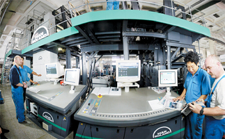 天津日報報業(yè)集團從德國引進的UNISET70膠印機是當今國際最先進的印刷設(shè)備,占領(lǐng)了印刷技術(shù)上的制高點。其采用的PECOM電子過程控制和自動化系統(tǒng),不僅可以控制整個印刷過程,還可以控制印報準備工作、材料后勤供應(yīng)和日常結(jié)算。先進的換色墨盒,幾分鐘就可以換色,結(jié)束了手工鏟墨的歷史。特有的輸墨裝置和潤濕裝置,可以充分保證油墨的清晰度和光澤度,提供最高質(zhì)量的精美印刷。