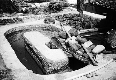 道路兩旁全是晾曬的竹子——造紙原料、紙坯和紙張,成千累萬。村中民房大多以石頭作基,滄桑而古老,在雞鳴犬吠聲中恍如置身遠古。村中多有客家人,詢之,亦云遠祖從珠璣巷而下。到處是做紙的小作坊,用水作動力的石碓轟然作響,將石灰腌至綿爛的竹子舂為紙漿。然后依次是抄紙、潷水、切紙和晾曬等過程,勞心勞力。我們來看像是表演,而在當地人來說是手藝,全村均以此為業,衣食賴從其出。所作紙張供作鞭炮、寺廟等用,其色黃,極粗糲,我們小時呼作“馬糞紙”是也。若選料和手工更精一些的是竹紙,從前人們自卷香煙時用,也是用于制作廣東名菜鹽翱雞不可或缺之物。