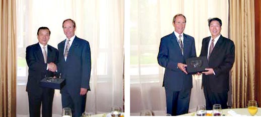 中國包協會長石萬鵬、常務副會長閃淳昌與利樂總裁親切握手 |