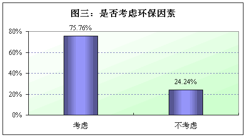 圖三數據顯示,國內企業有四分之三以上的企業在選擇不干膠紙時,會考慮到其產品的環保因素,這說明企業決策層的環保意識越來越強了。