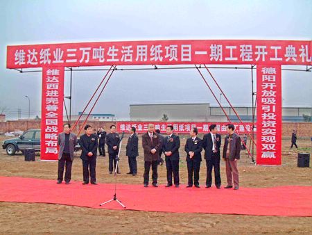 (中國紙網訊)2月26日上午,德陽市建市以來引進的最大的外商獨資項目——維達紙業3萬噸生活用紙項目一期工程開工典禮在德陽經濟技術開發區舉行,標志著中國西部目前最大的生活用紙生產基地正式破土開建。 維達國際控股有限公司執行董事董義平先生熱情致辭,對選擇德陽建立西南地區生產基地,從而完善維達的全國戰略布局充滿信心。德陽經濟技術開發區黨委書記、管委會主任楊震表示,開發區將一如既往地為維達在德陽的投資發展服好務,確保工程建設的順利實施。 自2004年維達公司計劃建立西南地區生產基地后,四川省內多個地市便積極與維達展開投資洽談。在與德陽經濟技術開發區接觸后,維達十分慎重,公司各位董事先后前來德陽深入考察,對開發區的投資環境與管理服務十分贊賞,最終在投資成本高于省內其他地方的情況下,于2004年8月正式與德陽經濟技術開發區簽約,確定將德陽作為維達西進的落腳點。