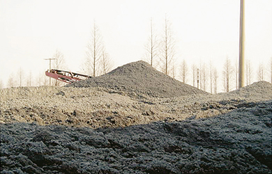 ·紙廠一度堆積如山的紙渣泥