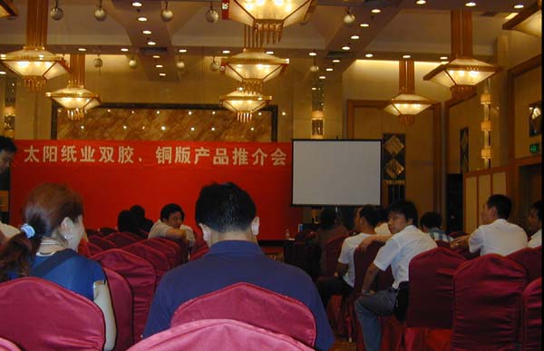 山東太陽紙業股份有限公司“太陽紙業雙膠、銅版產品推介會”今天下午在京舉行。會議在北京西苑飯店一層“燕樂堂”宴會廳召開。來自北京地區的紙張經銷商、印刷廠、出版社的采購負責人和技術負責人參加了本次會議。