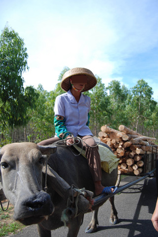 記者從乾頭的林地走到昌王的邊界,看到兩輛運木頭的牛車棄置在路上。旁邊的村民說,不知道這是誰的車,很可能是盜伐者的車。