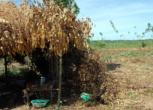 記者昨日(24日)在海頭鎮新洋市村看到了一片幾乎被盜伐殆盡的林地,護林員說,“這是一塊退耕還林地。從5月中旬開始就被人陸續來盜伐,然后或用經過改裝的拖拉機或牛車偷偷運走,賣到7、8公里外的木材加工廠。現在這片林地只剩下幾十畝尚未被盜搶。”