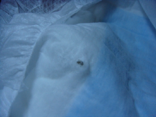 網友原文稱:“我是江蘇人,我們家寶寶現在已經9個多月了,一直都用的媽咪寶貝這個牌子,身邊的好多朋友也在用。一直都覺得很不錯,可是今天給寶寶換尿褲的時候,隨手拿出來的一片尿不濕卻嚇了我一大跳!來的時候,我看到一個小黑點,以為是一個小線頭 或者什么的 ,想隨手拈掉的,結果扯了半天沒扯出來。我仔細一看才發現那個小黑點是鑲在尿布里面的,扯了半天也沒扯出來。后來拿到陽光下一看才發現是一只小蟲子的實體,還有一對翅膀。(有句話怎么說來著?有翅膀的不一定是天使,也可能是死蟲子!氣憤。┠虿家呀浻昧舜蟀氪耍沂窃谖覀冞@的蘇果超市買的(江蘇的朋友可能都知道這個超市,也算是個連鎖大超市了),所以排除了假貨的可能。年前買的,又沒有保存小票的習慣,這個虧只能自己吃了!(娜娜/文)”