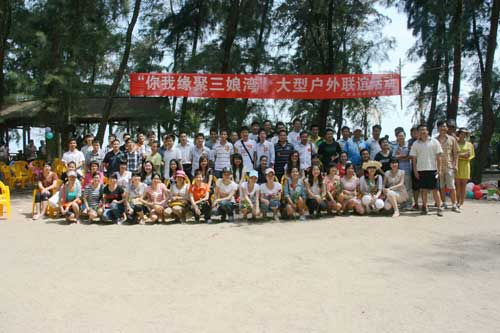 雙方青年員工在風(fēng)景如畫的三娘灣景區(qū)上演了現(xiàn)場版的“非誠勿擾”,通過“幸福密碼”、“背靠背,心相印”、“為愛向前飛”、“心有靈犀”等一系列情感互動游戲,加深了彼此間的溝通交流,拉近了年輕人間的距離,在活動結(jié)束時,不少男士為自己的“心動女生”送上了玫瑰花。喜慶、融洽、和諧的節(jié)日氣氛,讓單身員工在浪漫的沙灘上告別彼此的陌生,種下了愛情的種子。
