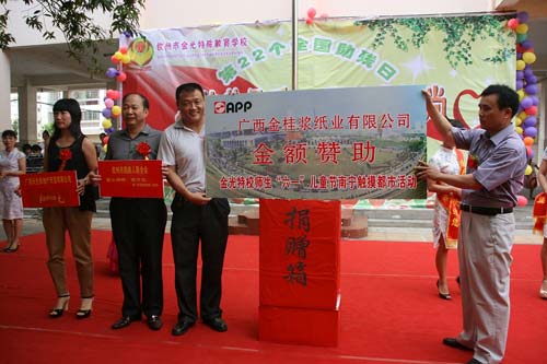 2003年,華人漿紙企業金光集團APP開始為這所殘疾人教育學校進行捐助,學校也由此更名為欽州市金光特殊教育學校。在APP及社會各界的關注與幫助下,欽州特校取得了長足發展,辦學規模、辦學條件得到了極大改善,目前,欽州市政府已為學校規劃了新的發展區域,未來將把該校建設成為欽州市各類殘疾兒童的專門教育機構。