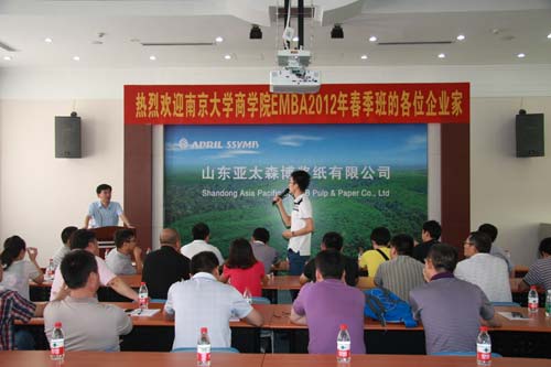 8月17日至19日,由南京大學(xué)商學(xué)院50余名EMBA企業(yè)家組成的代表團(tuán)到山東亞太森博漿紙有限公司參觀考察,代表團(tuán)一行參觀了該公司展廳、中控室、污水處理廠,并與相關(guān)負(fù)責(zé)人進(jìn)行了座談。此次來訪的企業(yè)家涉及制造業(yè)、銀行、媒體、服務(wù)業(yè)等多個(gè)行業(yè)。
