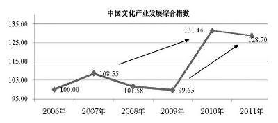 2006年至2011年中國文化產(chǎn)業(yè)發(fā)展綜合指數(shù)