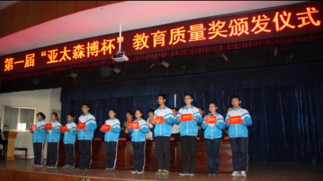 12月26日,第一屆“亞太森博杯”教育質量獎頒發儀式在日照開發區中學舉行,日照市僑聯、日照經濟技術開發區黨工委、日照經濟技術開發區教育局、日照開發區中學、連云港路小學、蘭州路小學和亞太森博(山東)漿紙有限公司的有關領導及師生代表們參加了儀式。
