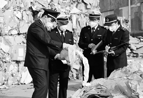 1月23日,山東淄博檢驗(yàn)檢疫局、淄博海關(guān)工作人員在博匯紙業(yè)股份有限公司進(jìn)口廢紙場(chǎng)站對(duì)進(jìn)口廢紙實(shí)施一次查驗(yàn)。