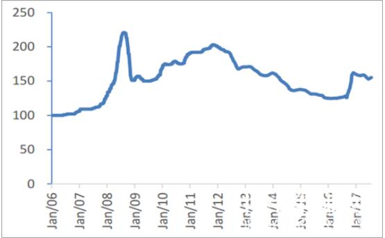 2016年上半年的紙漿價格低位運行,對紙企盈利能力提升產(chǎn)生積極影響;下半年至今紙漿與廢紙等原材料、煤炭價格上漲,交運新規(guī)實施帶來的運費成本的上漲,以及環(huán)保政策不斷趨嚴,助推各種紙品價格上漲,造紙企業(yè)盈利空間得到擴大。2016年、2017年上半年造紙業(yè)主營業(yè)務收入分別同比增長7%、14%,利潤總額分別同比增長16%、41%,行業(yè)景氣度明顯回升。