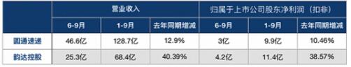 近日,圓通速遞和韻達控股相繼發布了2017年第三季度財務報告,兩家主要財務指標如下,申通將于10月31日公布季報。