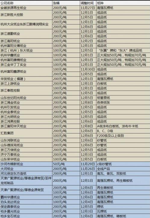 ②十二月第一周,廢紙、瓦楞箱板紙聯動提價,全國37家造紙廠的最新廢紙報價中,都選擇了上調紙價,幅度在30-200元/噸。