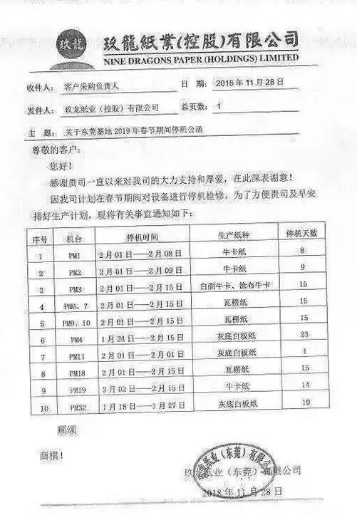 【摘要】注意了!注意了!紙業巨頭開始年底沖刺了!紙價能否逆風翻盤或就在這最后一搏!11月27日玖龍、山鷹發布漲價函后,28日另一巨頭榮成迫不及待加入陣營。今天(11月29日)起,榮成、玖龍、山鷹將集體上調成品紙價格,東莞玖龍28日也發布了春節停機計劃,10臺紙機將停機檢修4-23天。提醒各位做好排產安排!
