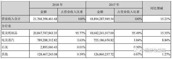 4月16日,太陽紙業披露2018年年度報告:實現營收217.68億,同比增長15.21%;實現歸屬于母公司所有者的凈利潤22.38億,同比增長10.54%。 報告期內,太陽紙業三大項目全部順利建成投產。展望2019年,太陽紙業分析了國內造紙工業生產和市場總體態勢,認為市場需求可能出現前低后高的局面。 營收分析 太陽紙業收入分為漿紙及紙制品、電及蒸汽、其他業務三大部分。其中漿及紙制品業務營收最高,達到208.48億元,占總營收的95.77%,比上年同期增長15.55%。