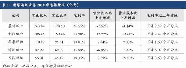 文化紙企業2018年及2019年一季度經營情況梳理
