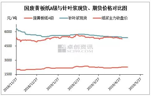那么,當(dāng)前宏觀經(jīng)濟(jì)環(huán)境矛盾突出,中美貿(mào)易談判與國內(nèi)經(jīng)濟(jì)下行壓力吸引市場主要關(guān)注。在此背景延續(xù)的預(yù)期下,廢舊黃板紙A級日均價(jià)與紙漿期貨主力收盤價(jià)之間的正相關(guān)性或維持在高位。