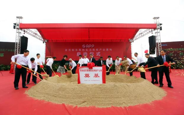 金光如東高檔生活用紙產(chǎn)業(yè)基地啟動(dòng)儀式 2019年7月10日——如東,金光集團(tuán)APP(中國)旗下金紅葉紙業(yè)集團(tuán)的高檔生活用紙產(chǎn)業(yè)基地(以下簡(jiǎn)稱 “產(chǎn)業(yè)基地” )在江蘇如東洋口港經(jīng)濟(jì)開發(fā)區(qū)舉行了隆重的啟動(dòng)儀式,標(biāo)志著金光集團(tuán) APP(中國)與江蘇省合力打造的首個(gè)智能化制造戰(zhàn)略升級(jí)項(xiàng)目正式進(jìn)入發(fā)展快車道,APP(中國)向高質(zhì)量發(fā)展邁出了的關(guān)鍵一步。 儀式當(dāng)天,南通市委副書記、市長徐惠民,江蘇省僑聯(lián)副主席兼秘書長陳鋒,南通市副市長徐新民,如東縣委書記沈峻峰,縣政協(xié)主席陳建華等如東縣四套班子全體領(lǐng)導(dǎo),金光集團(tuán)董事長兼總裁黃志源,金光集團(tuán) APP(中國)高級(jí)顧問虞彪,副總裁翟京麗,董事長辦公室總經(jīng)理林政道,基地指揮部總經(jīng)理陳宇,以及省、市、縣相關(guān)部門和鎮(zhèn)區(qū)負(fù)責(zé)人出席。如東縣委副書記、縣長陳慧宇主持啟動(dòng)儀式,各方嘉賓共同見證。 共話發(fā)展藍(lán)圖