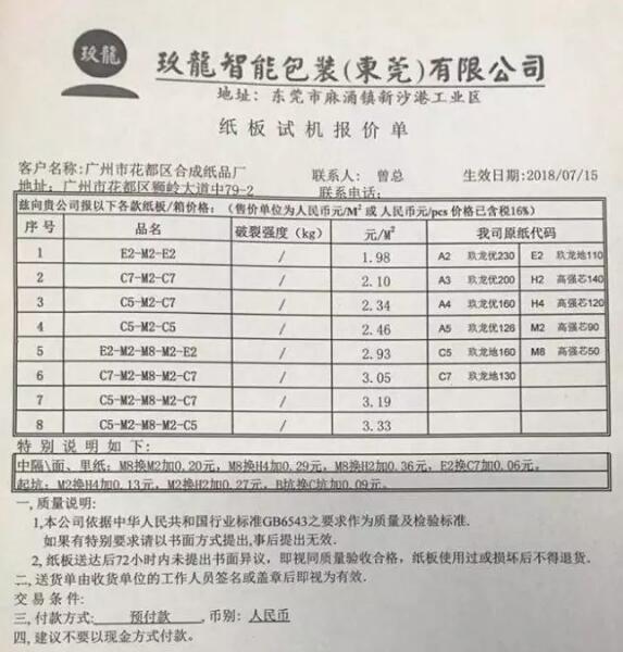 收購(gòu)后,該集團(tuán)將直接參與供應(yīng)包裝產(chǎn)品予客戶,并在包裝業(yè)上游及下游整合服務(wù)平臺(tái)方面產(chǎn)生協(xié)同效應(yīng),從而向客戶提供專業(yè)及個(gè)人化的包裝及全面綜合優(yōu)質(zhì)服務(wù)。上游及下游整合可向終端客戶提供一站式服務(wù),有利于穩(wěn)定包裝紙的質(zhì)量及售價(jià)以及建立良性競(jìng)爭(zhēng)的包裝紙市場(chǎng)。 近年來(lái),整條紙包裝產(chǎn)業(yè)鏈徹底由過(guò)去的增量市場(chǎng)轉(zhuǎn)為存量市場(chǎng),由于產(chǎn)能擴(kuò)充太快,包裝紙供大于求的局面一直得不到緩解,造成玖龍等包裝紙巨頭不得不降價(jià)求售,大大壓縮了贏利空間。 此次收購(gòu)的發(fā)生,意味著玖龍向下游包裝印刷業(yè)亮出了底牌,原有的競(jìng)爭(zhēng)格局將被打破,一些拼成本、拼走量的紙板和紙箱企業(yè)將首先面臨玖龍包裝的競(jìng)爭(zhēng)。 猶記得一年前的7月20日,一張玖龍智能包裝(東莞)有限公司的《紙板試機(jī)報(bào)價(jià)單》低調(diào)流入市場(chǎng),剎那間,整個(gè)珠三角的紙板及紙箱行業(yè)陷入了一片刀光血影之中。按照東莞紙板行業(yè)人士的估算,該報(bào)價(jià)與同行同等規(guī)格的至少低了10%,每平米價(jià)差達(dá)可達(dá)0.50元之多。