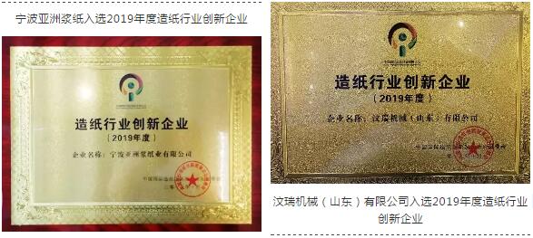 APP(中國)旗下寧波亞洲漿紙有限公司、汶瑞機械(山東)有限公司均雙雙成功上榜,獲2019年度“造紙行業創新企業”榮譽稱號。