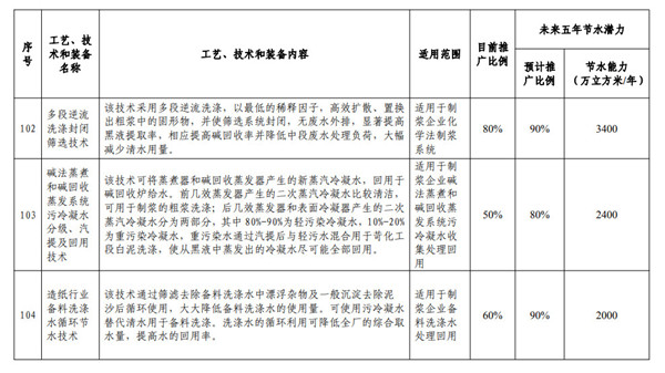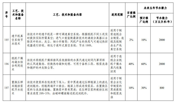 為促進(jìn)行業(yè)節(jié)水減污,《國家鼓勵的工業(yè)節(jié)水工藝、技術(shù)和裝備目錄(2019年)》共遴選了造紙行業(yè)13項節(jié)水技術(shù)裝備,如網(wǎng)毯高壓洗滌節(jié)水技術(shù)、造紙?zhí)菁壚霉?jié)水技術(shù)等。
