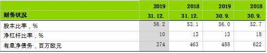2019年1-12月(與2018年1-12月相比) 銷售額為54.73億歐元(去年同期:57.09億歐元)。 經營性利潤為3.74億歐元(去年同期:8.43億歐元)?杀冉洜I性利潤為4.95億歐元(去年同期:8.49億歐元)。 稅前利潤為3.16億歐元(去年同期:7.69億歐元)。可比稅前利潤為4.36億歐元(去年同期:7.75億歐元)。 可比已占用資本回報率為9.6%(去年同期:16.8%)。 經營現金流為6.58億歐元(去年同期:8.82億歐元)。 2019年10-12月(與2018年10-12月相比) 銷售額為12.90億歐元(去年同期:14.19億歐元)。 經營性利潤為3200萬歐元(去年同期:2.08億歐元)?杀冉洜I性利潤為7600萬歐元(去年同期:2.08億歐元)。 稅前利潤為1800萬歐元(去年同期:1.93億歐元)。可比稅前利潤為6200萬歐元(去年同期:1.93億歐元)。 可比已占用資本回報率為6.1%(去年同期:16.4%)。 經營現金流為2.36億歐元(去年同期:2.92億歐元)。 2019年第四季度主要事件 與上一季度相比,以美元計價的長纖與短纖漿平均價格分別下降了10%和15%。 由于12月份的季節性下降,紙板的交付量比上一季度有所減少。折疊紙板與白牛卡的平均價格保持穩定。 芬林紙板開始對胡蘇姆紙漿廠第一階段現代化進行投資,為最終投資決定做準備,投資額為2100萬歐元。第一階段投資總額約為3.2億歐元。 2019年12月,芬林生活用紙就出售餐巾業務達成協議。此項交易涉及德國Stotzheim工廠的物業、機械、設備和倉庫,以及Fasana和Mondial品牌。 在報告期后發生的事件 由于芬蘭造紙工人工會與工業工會的罷工,芬林集團所有芬蘭工廠的生產于2020年1月27日停滯,造紙工人工會在制漿造紙行業的罷工持續至2020年2月10日。木制品行業工人工會的罷工仍在繼續。 2020年1-3月利潤預測 由于芬蘭工廠的罷工,2020年第一季度可比經營性利潤預計將比2019年第四季度有所下降。 芬林集團總裁兼首席執行官何亦凱(IlkkaHämälä)表示: “從2018年第四季度起,紙漿價格開始下降,并一直持續至整個2019年,這導致芬林集團的業績水平與2018年相比出現顯著下降。木制品(如鋸材、膠合板與單板層積材)的需求和價格同樣很低。集團折疊紙板與白牛卡業務保持良好水平,符合預期。生活用紙與防油紙市場具有典型的穩定性,業務的運營效率則受益于芬林生活用紙的戰略調整而得到了提高。 那些推動所有產品長期需求與增長的因素預計不會發生改變。消費者需求預計將增長,特別是在發展中市場。此外,在所有市場領域中,可再生材料(如木材)制成的產品有望進一步替代化石基材料。在從森林到消費者這一整條價值鏈的發展中,生態可持續性的進一步改善將變得越來越重要。 芬林集團的運營始于森林管理。我們是波羅的海地區最大的森林管理服務供應商。在業務發展過程中,我們始終致力于降低氣候變化對林業的影響,促進森林本身的生物多樣性。同時,我們努力確保林業的財務可持續性,這對私人森林所有者、相關企業與芬蘭社會都非常重要。除了在森林中開展的工作外,想要確保財務、社會及生態的可持續性,還需要持續發展我們的工廠、產品以及相關的整條價值鏈。 在過去幾年里,芬林集團已向北歐木材加工廠投資超過20億歐元。目前,我們正計劃下一個約20億歐元的投資計劃。胡蘇姆木漿廠回收鍋爐的投資準備工作正在進行中。即將在凱米(Kemi)興建的生物制品工廠正在申請環境許可,有關投資決策的其他準備工作也在進行中。勞馬新一代鋸木廠的前期工程項目也正在按計劃進行。” 關鍵數據
