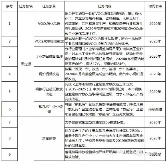 2、針對(duì)工業(yè)源大氣污染治理的舉措,涉及六個(gè)方面針 對(duì)工業(yè)源大氣污染治理,治理舉措包括: 1. 開(kāi)展新一輪工業(yè)企業(yè)揮發(fā)性有機(jī)物(VOCs)深化治理。深入查補(bǔ)短板,強(qiáng)化源頭防控、落實(shí)全過(guò)程管理,采取分行業(yè)“菜單式”治理任務(wù)對(duì)照模式,鞏固上一輪VOCs綜合治理成效,實(shí)現(xiàn)精準(zhǔn)、科學(xué)治污。創(chuàng)新試行“協(xié)議減排”,鼓勵(lì)企業(yè)開(kāi)展高于現(xiàn)行法規(guī)標(biāo)準(zhǔn)要求的治理措施,力爭(zhēng)出臺(tái)配套補(bǔ)貼政策,研究編制工業(yè)涂裝行業(yè)和儲(chǔ)罐大氣污染物排放標(biāo)準(zhǔn)。2020年底前完成本市20%重點(diǎn)VOCs排放企業(yè)深化治理工作。 2. 全面完成中小燃油燃?xì)忮仩t提標(biāo)改造。按照《上海市鍋爐大氣污染物排放標(biāo)準(zhǔn)》,繼續(xù)推進(jìn)中小燃油燃?xì)忮仩t提標(biāo)改造,鼓勵(lì)燃油鍋爐實(shí)施“油改氣”“油改電”,2020年9月底前全面完成(1185臺(tái))。 3. 扎實(shí)推進(jìn)工業(yè)爐窯大氣污染綜合治理。按照國(guó)家和本市工業(yè)爐窯大氣污染綜合治理工作方案,到2020年完善工業(yè)爐窯大氣污染綜合治理管理體系,提升本市工業(yè)爐窯設(shè)備和污染治理水平,年底前完成工業(yè)爐窯清潔能源替代66臺(tái),淘汰17臺(tái),深度治理24臺(tái),實(shí)現(xiàn)工業(yè)爐窯穩(wěn)定達(dá)標(biāo)排放。 4. 強(qiáng)化重點(diǎn)企業(yè)大氣污染治理。督促本市重點(diǎn)企業(yè)繼續(xù)加大大氣污染治理力度,按照“一廠一策、分步實(shí)施”原則,制定并實(shí)施年度治理計(jì)劃。 5. 推進(jìn)大氣標(biāo)準(zhǔn)一體化。涉VOCs重點(diǎn)行業(yè)加嚴(yán)排放控制,推進(jìn)區(qū)域統(tǒng)一控制要求。在長(zhǎng)三角區(qū)域探索港口實(shí)施氮氧化物排放控制區(qū)的可行性。 6. 推進(jìn)執(zhí)法聯(lián)動(dòng)和數(shù)據(jù)共享。建立區(qū)域執(zhí)法互督互學(xué)長(zhǎng)效工作機(jī)制,在內(nèi)河船舶、柴油貨車(chē)方面嘗試開(kāi)展區(qū)域聯(lián)動(dòng)執(zhí)法。探索搭建移動(dòng)源監(jiān)管數(shù)據(jù)互聯(lián)互通平臺(tái)。