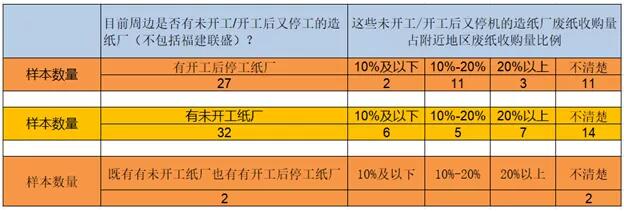 造紙廠停工情況 152個樣本中,有61個打包站表示,其所供應的造紙廠有年后未開工/開工后又停工的現象。