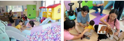 據(jù)了解,該項目2020年首批三個中心設(shè)在寧波路幼兒園、蘭州路幼兒園、桂林路幼兒園。每個中心配備了2-3名經(jīng)過專業(yè)培訓(xùn)的養(yǎng)育師,中心一周最多可為50-70名幼兒及其家長提供服務(wù)。 中心聘請專業(yè)團隊進行室內(nèi)設(shè)計和軟裝施工,在保證幼兒安全的前提下,科學(xué)分區(qū),滿足孩子閱讀、娛樂等不同的需求,同時減少相互間干擾。每個中心除了建設(shè)有兩個一對一課程室外,還劃分了閱讀區(qū)、自由活動區(qū),配備了560冊圖書,兩套能夠滿足6--36個月孩子不同周齡使用的玩教具。中心還配備了海洋球池、滑梯組合、平衡木、小推車等大型和小型玩具。中心課程由專業(yè)的研發(fā)機構(gòu)設(shè)計,根據(jù)幼兒不同周齡的成長發(fā)育特點進行智能系統(tǒng)線上科學(xué)排課,有針對性的授課。課程內(nèi)容包括一對一親子閱讀、一對一親子互動、集體故事會和主題集體活動。