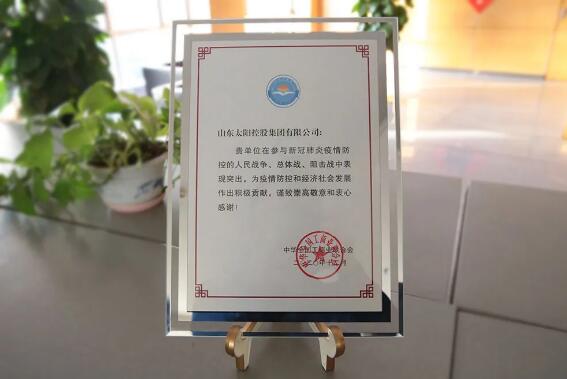 近日,全國工商聯對抗擊新冠肺炎疫情做出優異成績的先進民營企業進行通報表揚,山東太陽控股集團有限公司(以下簡稱“太陽控股集團”)位列其中,榮獲“抗擊新冠肺炎疫情先進民營企業”稱號。