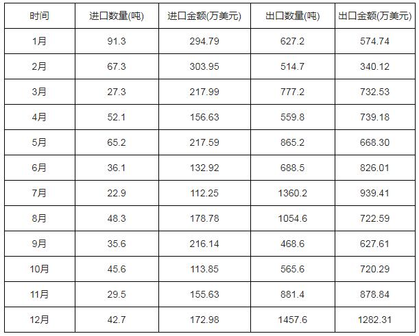 根據中國海關數據顯示:2019年1-12月中國其他制造(紙漿、紙或紙板)制品機器的零件進口數量為563.89噸,進口金額為2273.51萬美元;2019年1-12月其他制造(紙漿、紙或紙板)制品機器的零件出口數量為9820.33噸,出口金額為9051.91萬美元。