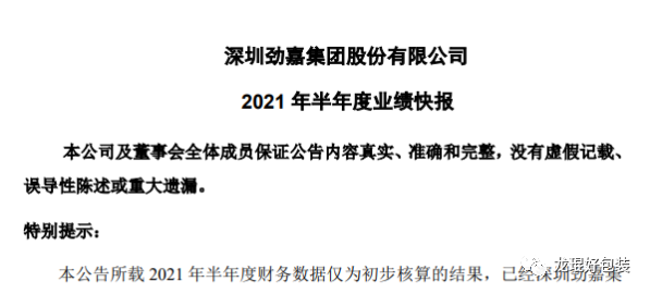 7月27日,深圳勁嘉集團股份有限公司公布2021年半年度業績快報,營業、利潤雙雙增長。數據顯示,勁嘉集團1-6月實現營業總收入24.47億元,同比增長27.64%;實現歸屬于上市公司股東的凈利潤5.04億元,同比增長21.28%。