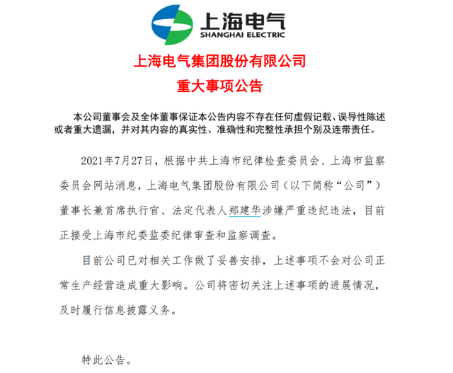 近日,上海國資委100%控股的上海電氣集團(tuán)出現(xiàn)爆雷,媒體一片嘩然。 2021年7月6日,上海電氣(601727)發(fā)布公告,因公司涉嫌信息披露違法違規(guī),中國證監(jiān)會決定對公司立案調(diào)查。7月27日晚,上海電氣黨委書記、董事長鄭建華因涉嫌嚴(yán)重違紀(jì)違法,目前正接受上海市紀(jì)委監(jiān)委紀(jì)律審查和監(jiān)察調(diào)查。 在該通報前2個月,上海電氣(601727)遭遇財務(wù)“黑天鵝”,引發(fā)市場廣泛關(guān)注,其83億“財務(wù)黑洞”之謎至今未解。自子公司業(yè)績爆雷以來,上海電氣A股股價累計下跌23.03%,港股累計下跌30.02%,A、H股市值合計已蒸發(fā)近300億元人民幣。