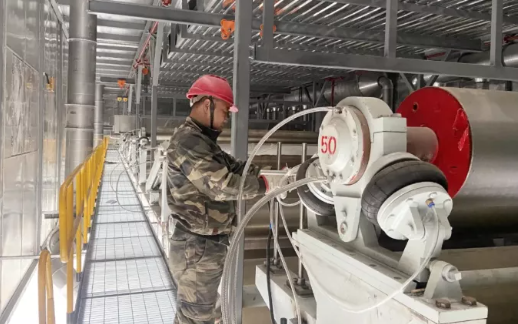 據(jù)施工負(fù)責(zé)人介紹,為加快設(shè)備安裝進(jìn)度,項(xiàng)目部倒排工期、倒逼進(jìn)度,技術(shù)人員加班加點(diǎn),整個(gè)2號(hào)箱板紙生產(chǎn)線(xiàn)從網(wǎng)部流送系統(tǒng)、成型設(shè)備、壓榨部脫水到在線(xiàn)物理指標(biāo)檢測(cè)設(shè)備、成品包裝設(shè)備全部就位,管道連接已完成100%;配電設(shè)施以及電纜連接也已全部完成;預(yù)計(jì)單機(jī)調(diào)試一周左右正式開(kāi)機(jī)生產(chǎn)。