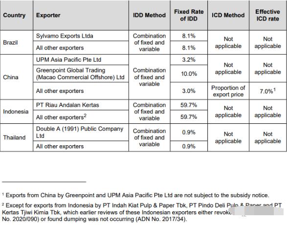 2022年3月31日,澳大利亞反傾銷委員會發布第2022/023號公告稱,澳大利亞工業、能源和減排部部長通過了澳大利亞反傾銷委員會對進口自中國、巴西、泰國、印度尼西亞的A4復印紙(A4 Copy Paper)作出的第一次反傾銷日落復審肯定性終裁建議及對中國涉案產品作出的第一次反補貼日落復審肯定性終裁建議,決定對上述國家的涉案產品以固定和可變相結合的方式征收反傾銷稅,征稅詳情見附表(澳大利亞對涉華A4復印紙反傾銷日落終裁征稅表);對中國涉案產品征收7.0%的反補貼稅(Greenpoint Global Trading(Macao Commercial Offshore) Ltd.和芬歐匯川亞太私人有限公司除外)。涉案產品的澳大利亞海關編碼為4802.56.10.03和4802.56.10.09。 2016年4月12日,澳大利亞對進口自巴西、中國、印度尼西亞和泰國的A4復印紙進行反傾銷立案調查,對進口自中國和印度尼西亞的A4復印紙進行反補貼立案調查。2017年3月17日,澳大利亞反傾銷委員會發布第2017/34號公告,終止對所有印度尼西亞涉案企業的反補貼調查。2017年4月19日,澳大利亞對進口自中國的A4復印紙作出反傾銷和反補貼肯定性終裁,決定對涉案產品征收3.1%~34.4%的反傾銷稅和7.0%的反補貼稅,對進口自巴西、印度尼西亞和泰國的涉案產品作出反傾銷肯定性終裁,決定對上述國家分別征收2.9%、12.6%~45.1%、13.4%~23.2%的反傾銷稅,有效期至2022年4月19日。2020年4月28日,澳大利亞對進口自中國的每平方米70克重~100克重的A4復印紙啟動反規避立案調查。2021年3月19日,澳大利亞決定自2020年4月28日起將進口自中國涉案產品的范圍擴大至每平方米67克重~100克重;對每平方米67克重~69克重的A4復印紙征收暫定反傾銷稅和反補貼稅。2021年7月2日,澳大利亞反傾銷委員會對原產于中國的每平方米70克重~100克重及每平方米67克重~69克重的A4復印紙發起第一次反傾銷和反補貼日落復審立案調查,對原產于巴西、印度尼西亞和泰國的每平方米70克重~100克重的A4復印紙發起第一次反傾銷日落復審立案調查。 附表:澳大利亞對涉華A4復印紙反傾銷日落復審終裁征稅表