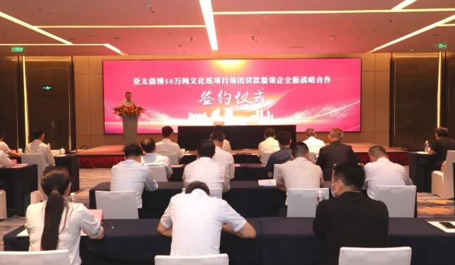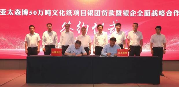 6月28日,中國(guó)銀行日照分行牽頭中國(guó)進(jìn)出口銀行山東省分行、工商銀行日照分行、農(nóng)業(yè)銀行日照分行、建設(shè)銀行日照分行、交通銀行日照分行、平安銀行青島分行、民生銀行日照分行舉辦亞太森博50萬(wàn)噸文化紙項(xiàng)目銀團(tuán)貸款暨銀企全面戰(zhàn)略合作簽約儀式,8家金融機(jī)構(gòu)將共建銀團(tuán),為亞太森博50萬(wàn)噸文化紙項(xiàng)目建設(shè)提供35.5億元貸款支持及其他金融配套服務(wù)。