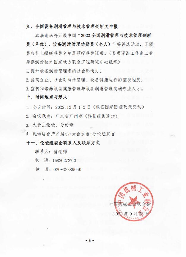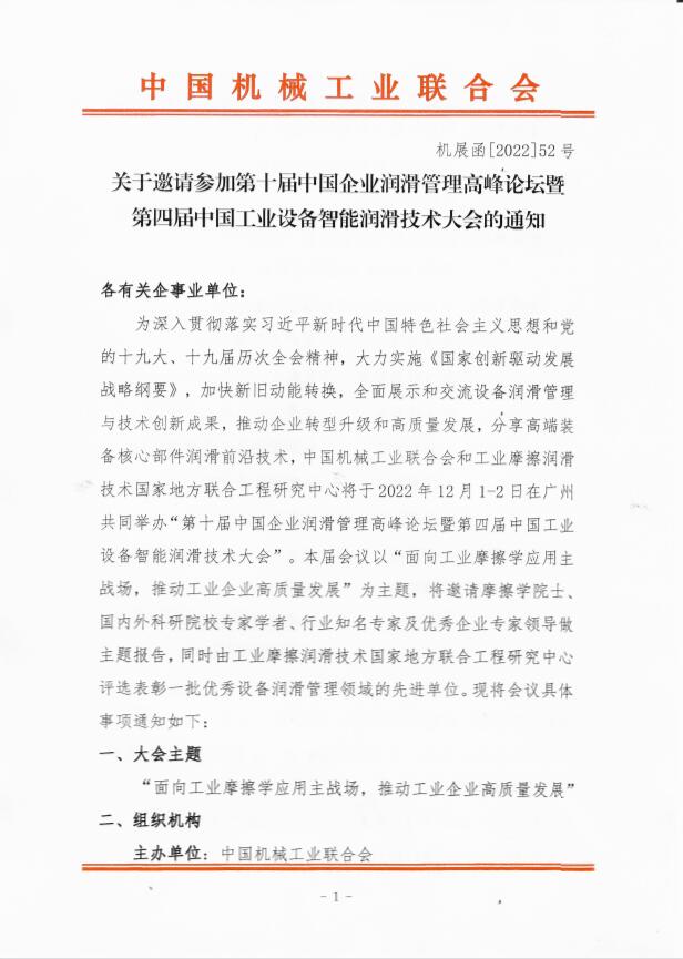 關于邀請參加第十屆中國企業潤滑管理高峰論壇的通知