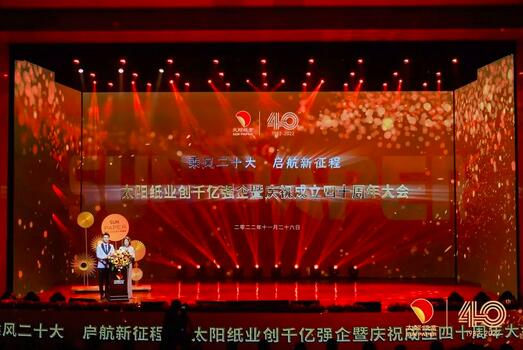 11月26日,太陽紙業召開以“乘風二十大啟航新征程”為主題的“創千億強企暨慶祝成立四十周年大會”。這是太陽紙業認真學習宣傳貫徹黨的二十大精神,凝心聚力啟航新時代的重要活動。中國造紙學會理事長、中國造紙協會生活用紙專委會主任、全國工商聯紙業商會顧問曹振雷,中國工程院院士、華南理工大學教授陳克復,新疆中泰集團有限責任公司副總會計師、新疆中泰紡織服裝集團有限公司黨委書記于雅靜,全國工商聯紙業商會副會長、廈門建發紙業總經理程東方,濟寧能源集團黨委書記、董事長張廣宇,福伊特造紙亞洲區總裁喻致兵,部分供應商及客戶代表、全國工商聯紙業商會創會會長、山東太陽紙業股份有限公司黨委書記、董事長、總經理李洪信,以及太陽紙業高管、管理人員和員工代表等出席大會。