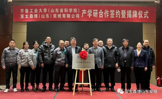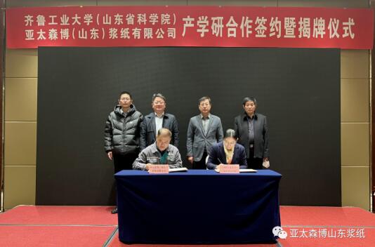 1月6日,亞太森博(山東)漿紙有限公司與齊魯工業大學(山東省科學院)簽署產學研合作協議并舉行揭牌儀式。齊魯工業大學(山東省科學院)副校(院)長劉玉,輕工學部主任、國家重點實驗室常務副主任吉興香,輕工學部黨委書記孔凡功,山東省輕工集體企業聯社正高級工程師張永賓,公司管理層李潤明、常永貴、王少光等出席儀式。