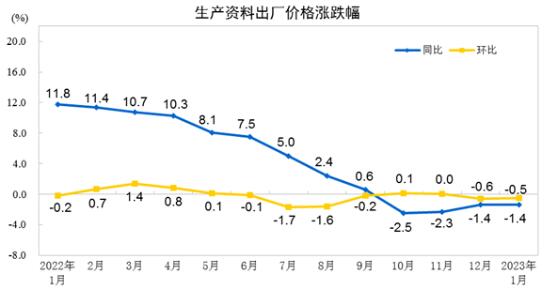 2023年1月份工業生產者價格主要數據