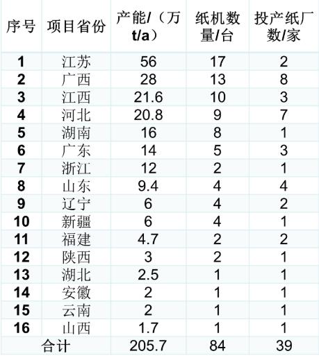 新投產(chǎn)產(chǎn)能的地區(qū)分布見表1。