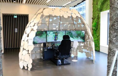 模擬樹木采伐互動裝置 在Pro Nemus訪客中心,復雜的流程以極具視覺吸引力且易于掌握的方式呈現在訪客面前。哈馬雷解釋道,這大大增加了工廠參觀的價值。 在參觀過程中,我們展示生產運營的機會總是有限的。出于安全考慮,大部分生產流程發(fā)生在禁止游客進入的區(qū)域。從Pro Nemus訪客中心開始參觀,讓他們對流程有了清晰的了解,使實地參觀工廠接收的信息更加豐富。 哈馬雷表示,Pro Nemus訪客中心已收到了客戶的積極反饋,特別是對工業(yè)生態(tài)系統的反饋。該系統在一體化工廠廠區(qū)引入了生物制品廠和其他運營商。訪客對采伐機模擬器和拍照亭也贊不絕口。