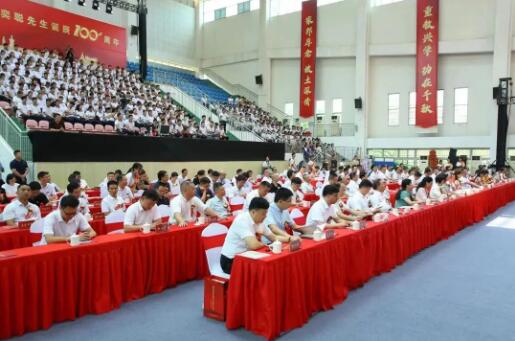 紀念活動在奕聰中學體育館舉行,與會領導、嘉賓、在校師生相聚一堂,緬懷思念、傳承遺志。
