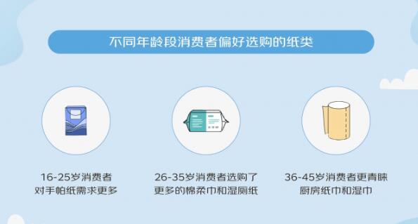 在今年11.11期間,京東的紙品消費(fèi)呈現(xiàn)更加細(xì)分化的趨勢(shì)。京東消費(fèi)及產(chǎn)業(yè)發(fā)展研究院發(fā)布的數(shù)據(jù)顯示,今年京東11.11首周(10月23日至30日間,下文同),生活用紙品類總成交額同比增長(zhǎng)52%,其中棉柔巾成交額同比增長(zhǎng)286%,嬰童乳霜紙成交額同比增長(zhǎng)137%,抽紙成交額同比增長(zhǎng)69%,濕廁紙成交額同比增長(zhǎng)58%。在日用品的精致消費(fèi)趨勢(shì)下,紙巾消費(fèi)同樣呈現(xiàn)出多化、精細(xì)化等特點(diǎn),主打“專紙專用”,從卷紙、抽紙拓展至濕廁紙、廚房紙巾、消毒紙巾、嬰兒乳霜紙等細(xì)分功能類紙巾,線上紙品消費(fèi)正在迎來品質(zhì)化升級(jí)。 線上紙品消費(fèi)穩(wěn)步增長(zhǎng)新興細(xì)分品類增速超平均水平 紙品作為日常生活的必需品,其較高的消費(fèi)頻次和消費(fèi)者“囤貨”的習(xí)慣,使得其在線上一直有著較好的增長(zhǎng)表現(xiàn)。京東11.11首周數(shù)據(jù)顯示,在生活用紙品類中,那些品質(zhì)好、實(shí)用性高、能滿足日常生活多方需求的細(xì)分產(chǎn)品受到了消費(fèi)者的廣泛歡迎。以成交額同比增長(zhǎng)達(dá)286%的棉柔巾為例,因?yàn)槠淞己玫奈鼭裥浴⒂H膚性、不易掉屑、可干濕兩用等特點(diǎn),受到越來越多家庭的喜愛。 嬰童市場(chǎng)是生活用紙產(chǎn)品另一個(gè)增速亮眼的細(xì)分市場(chǎng)。隨著消費(fèi)者生活品質(zhì)的提升,品質(zhì)更好、安全性更高的嬰童專用紙品受到很多年輕家長(zhǎng)的青睞。以成交額同比增長(zhǎng)達(dá)137%的嬰童乳霜紙為例,針對(duì)嬰幼兒嬌嫩的皮膚,嬰童乳霜紙?zhí)砑恿吮褚蜃樱辜埖臐耥g度和觸感優(yōu)于普通紙巾,所以常被應(yīng)用于鼻炎/鼻敏感、感冒、敏感肌膚護(hù)理及嬰兒手口擦拭等特定場(chǎng)景。 對(duì)于不同的細(xì)分產(chǎn)品,消費(fèi)者的關(guān)注點(diǎn)也不盡相同。比如,抽取式、吸油吸水功能、有印花的廚房紙巾更受消費(fèi)者關(guān)注。在選購(gòu)濕廁紙時(shí),消費(fèi)者對(duì)于是否可沖散、原料成分和包裝規(guī)格更為關(guān)注。嬰童用紙的消費(fèi)者選購(gòu)時(shí)更關(guān)注產(chǎn)品的做工、安全性、實(shí)用性,力求為家中寶寶提供更舒適的體驗(yàn)。 26-35歲消費(fèi)者占據(jù)線上紙品消費(fèi)半壁江山 女性成交額占比為64%