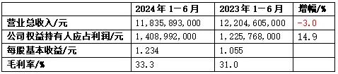 2.業務回顧 2024年上半年,國家有序落實各項宏觀政策,國民經濟穩中有進。然而地緣政治局勢日趨緊張、利率持續高企及貿易保護主義興起,為全球經濟發展迎來挑戰。恒安憑借強大的綜合競爭優勢及聚焦盈利的有效銷售策略,持續擴大市場的覆蓋,進一步鞏固其強勁的業務韌性。 期內,國內個人護理產品消費市場競爭非常激烈,國內外品牌均采取進取的減價及促銷等措施,以圖爭奪國內的不同消費客戶群及渠道,導致集團銷售額呈現負增長。然而,恒安深挖優質個人護理產品需求增加及消費渠道碎片化所釋放的消費潛力,通過有效的穩定價格策略及產品持續升級及高端化,深入拓展電商平臺及新零售渠道,并同時促進傳統渠道的銷售及拓展新的增長點,全渠道銷售發展效益不斷提升。受惠于全渠道銷售策略、品牌形象持續提升及多元化產品組合,盡管三大核心業務板塊(生活用紙及濕巾、衛生巾及紙尿褲業務)的總銷售同比略減2.2%,但其銷售表現已是明顯優于市場整體的負增長表現,市場占有率持續且長居行業領先地位。上半年,集團的整體收入則較去年同期下跌3.0%至約11,835,893,000元(2023年上半年:12,204,605,000元)。 回顧期內,面對激烈的市場競爭,恒安積極應對市場變化,堅守穩定價格及聚焦利潤,有效地進一步擴大市場占有率及鞏固市場領先地位。期內,受惠于原材料價格于去年下半年的顯著回落,2024年上半年的成本仍持續同比下降。集團的升級產品及高端產品系列于期內均取得增長,令三大業務的毛利明顯改善。2024年上半年,集團整體毛利大幅上升約3.9%至約3,936,242,000元(2023年上半年:3,788,550,000元),毛利率則上升至約33.3%(2023年上半年:31.0%)。 期內,公司權益持有人應占利潤約為1,408,992,000元(2023年上半年:1,225,768,000元),同比上升約15.0%,主要是原材料成本于期內下降、產品升級導致三大業務的毛利改善及匯兌虧損減少所致。 2.1生活用紙及濕巾業務 2024年上半年,集團聚焦改善利潤,以穩定價格及全渠道銷售策略應對市場的價格競爭,持續推動生活用紙及濕巾銷售。期內,生活用紙及濕巾業務銷售收入同比下跌約3.1%至約6,950,578,000元(2023年上半年:7,170,110,000元),表現仍優于行業水平,市場份額保持領導地位。生活用紙及濕巾業務銷售占集團整體收入約58.7%(2023年上半年:58.7%)。 受惠于木漿成本下跌及濕巾等高端產品的銷售占比提升,2024年上半年生活用紙及濕巾產品毛利率上升至約19.6%(2023年上半年:17.7%)。 在國民衛生意識提升及消費升級需求日增的驅動下,集團的升級及高端生活用紙產品銷售表現亮眼。3月,集團心相印品牌攜手業界發布“100%原生木漿”標識,同時推出“絨立方系列”的各類型生活用紙!敖q立方”是集團引入國內首臺進口TAD紙機設備所生產的全新系列,也是國內首款采用進口TAD技術的生活用紙。絨立方系列面巾紙柔軟親膚,廚房紙巾能高效吸油鎖水,深受消費者青睞,帶動絨立方系列的銷售收入增長。 濕巾業務方面,集團通過推出多元化的濕巾產品組合,加快滲透濕廁紙、嬰兒濕巾、成人濕巾、家庭清潔濕巾等細分市場,滿足消費者的不同喜好及需求。此外,濕巾的毛利率為生活用紙及濕巾產品中最高,盈利能力甚佳。期內,濕巾的毛利率為52.2%。銷售收入為約591,953,000元(2023年上半年:491,497,000元),增長20.4%,占生活用紙及濕巾業務銷售比例約為8.5%(2023年上半年:6.9%)。此外,提升心相印的品牌印象,展現對社會的關愛,于期內發布心相印與馬基德爺爺“玫瑰人生”的聯名抽紙。 集團積極應對渠道碎片化,早期投入資源的布局已邁入收獲期,生活用紙及濕巾業務于電商及新零售渠道(包括零售通及社區團購等)渠道的銷售增長超過約6.0%,占生活用紙及濕巾銷售比約36.4%,表現亮眼。 集團將研發更多高質量的產品,致力滿足消費者多樣化的需求,提高生活用紙生產的成本效益,增加各生產基地的產能。期內,集團的年產能提升至約為163萬t,湖北孝感一期及廣東云浮一期的部分項目已投產,預計2024年下半年至2025年初將在廣東云浮項目余下的部分逐步完成增加產能,以迎合市場情況和滿足銷售增長的需求。 2.2衛生巾業務 恒安持續推進女性護理用品升級和高端化布局,滿足消費者對高質量產品的需求。集團旗下的升級衛生巾產品如“萌睡褲”系列及去年下半年推出的高端產品“天山絨棉”系列,憑借優良的質量和品牌形象,深受消費者青睞。 新消費模式滲透率持續快速提升,加劇渠道碎片化。電商平臺和其他新興零售渠道(包括社區團購)蓬勃發展。集團積極把握新興消費趨勢的機遇,大力拓展新的銷售渠道,同時鞏固在傳統渠道中的領先優勢。然而期內國內衛生巾市場競爭日趨激烈,國內外品牌均采取減價及促銷,致集團的促銷費用無可避免地以雙位數的百分比同比上升,2024年上半年衛生巾業務銷售收入下降2.2%至約3,146,946,000元(2023年上半年:3,219,295,000元),占其整體收入約26.6%(2023年上半年:26.4%)。 集團堅持穩定的定價策略及審慎投放促銷費用,受惠于品牌高端化及升級產品占比穩步提升,以及期內衛生巾的主要石化原材料價格維持穩定,衛生巾業務于2024年上半年的毛利率比去年同期改善至約62.7%(2023年上半年:61.8%)。 集團旗下衛生巾品牌“七度空間”不斷推出升級及高端產品,并致力提升品牌形象。近年主推的“天山絨棉”系列產品,旨在滿足消費者追求高質量產品的需求
