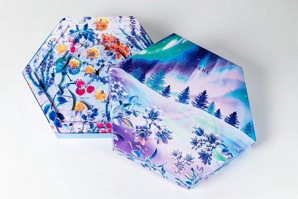 優(yōu)姿婷可持續(xù)發(fā)展與包裝總監(jiān)埃西-阿羅拉(Essi Arola)表示:“美妝日歷禮盒的設計旨在創(chuàng)造一種視覺震撼和身臨其境的體驗。包裝的外觀設計捕捉到了北歐的美麗景色。日歷表面的3D壓紋為冰花圖案增添了觸感。半透明的全息燙金閃爍著神奇的光芒,給人一種節(jié)日的喜慶和迷人的感覺。”