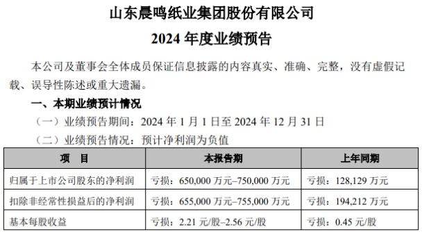 天津大無縫鋼管 1月23日晚間,晨鳴紙業發布的2024年度業績預告顯示,公司去年歸母凈利潤預計虧損65億元至75億元,相較于2023年虧損12.81億元的數據,虧損數額進一步擴大。 這是自上世紀九十年代,中國造紙企業有上市記錄以來,出現的年度最大數額的虧損! 對于業績變動原因,晨鳴紙業給出多個原因:近年來,造紙行業新增產能集中投放,短期供需矛盾突出,報告期內公司主要產品價格持續走低,毛利同比下降;部分融資租賃客戶經營不善,出現訴訟、查封等突發情形,公司出于謹慎性原則,對部分融資租賃客戶加大了壞賬準備計提比例;受四季度公司主要生產基地陸續停機檢修影響,產能發揮不理想,產銷量同比出現下滑,公司對部分資產計提了減值準備。 值得注意的是,從晨鳴紙業釋放的信息看,其相關債務問題和資金問題,也在積極推動中。 晨鳴紙業在業績預告中稱,目前,金融機構成立了省級債委會,初步約定暫時不抽貸、不壓貸,到期業務應續盡續,并研究給予展期、降息、延長結息周期等支持,減輕公司經營負擔,但相關事項還需各金融機構履行各自審議報批程序。