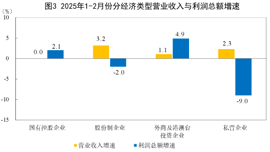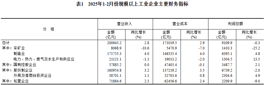3月27日,國家統計局網站發布2025年1—2月份全國規模以上工業企業利潤情況。數據顯示,2025年1—2月份,全國規模以上工業企業實現利潤總額9109.9億元,同比下降0.3%。